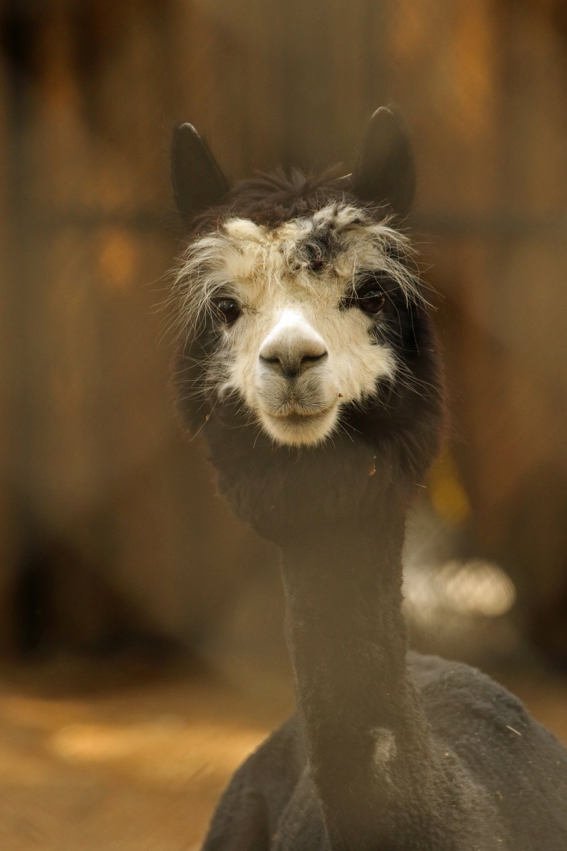 Alpacas are the smallest species of domesticated camelids (camel family). They look almost just like a llama, except smaller. They have small heads, with large eyes and large pointed ears. Their necks, bodies and legs are slender. They have two sharp, pointed nails on the end of each padded foot. They can come in many different colors and be either one solid color, or multicolor. Males and females look basically the same, except that the males can have larger bottom teeth used in fighting. There are two different breeds of alpaca. The huacaya (which are the most common) have long crimpy hair that covers their neck, legs and body. The suri have much silkier hair that grows faster.