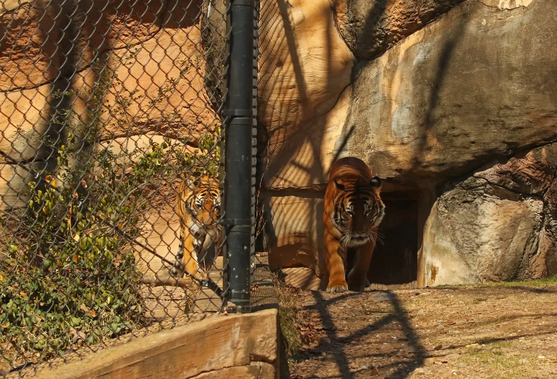 Introducing and breeding tigers successfully takes a lot of careful planning as tigers are dangerous carnivores who can react aggressively when meeting new tigers. Tigers first become acquainted through a protective mesh barrier called a “howdy door” where the tigers can see and smell each other but cannot physically interact. Keeper staff monitor their behavior closely over several weeks while the tigers adjust and begin to show friendly behaviors.